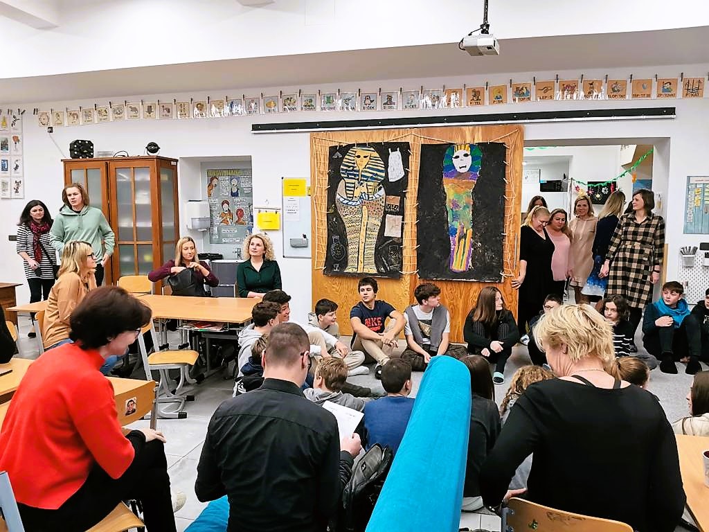 Cílem setkání bylo inspirovat se v oblasti individuální podpory žáků na druhém stupni a v oblasti práce s integrovanými tématy. Naše představa byla, že nám tato témata představí místní paní učitelky, ale na místě nás čekalo překvapení. Setkání proběhlo především pod taktovkou žáků šesté až deváté třídy, a to nám všem vyrazilo dech. Děti velmi přirozeným a zdravě sebevědomým způsobem začaly vyprávět o školním vzdělávacím programu, o nastaveném sebehodnocení, o spolupráci s rodiči či organizaci triád. Na naše všetečné otázky odpovídaly pohotově a otevřeně. Obdivovali jsme, jak dobře rozumí systému, ve kterém se vzdělávají, a jak ho umí vysvětlit. Zkrátka byl to takový pedagogický seminář pod vedením jedenácti až patnáctiletých žáků. A zde se patří vyjádřit obdiv všem pedagogických pracovníkům školy, protože si uvědomujeme, že je to výsledek jejich pedagogického působení, přemýšlení nad vytvořením prostoru pro seberealizaci dětí, sebepoznání, komunikaci, spolupráci atd. Atmosféra, kterou jsme ve škole cítili, byla plná vzájemného respektu, otevřenosti a přátelských vztahů. Takže to, že nás dnem provázely děti, je nesporný důkaz velmi kvalitní a profesionální práce všech pedagogů školy. Gratujeme.