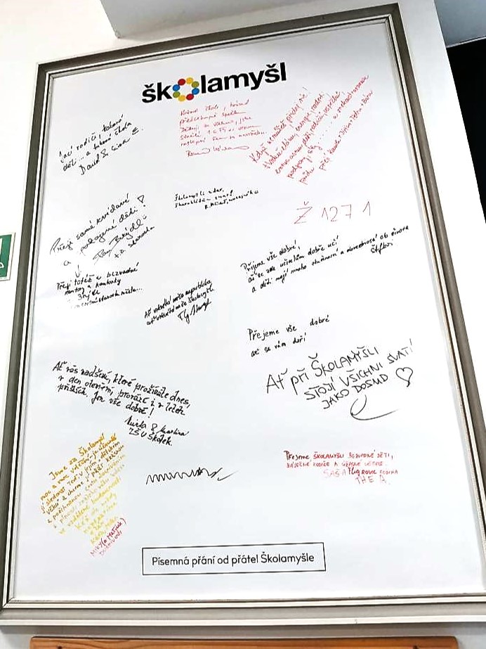 Školamyšli přejeme, ať se jí i nadále daří pečovat o přátelskou atmosféru a rozvíjet inspirativního ducha školy.