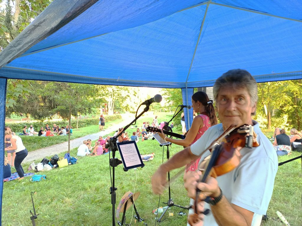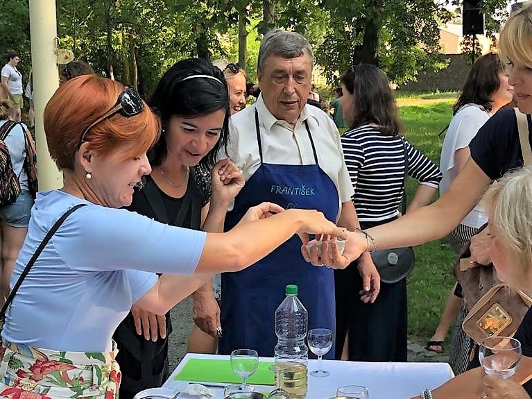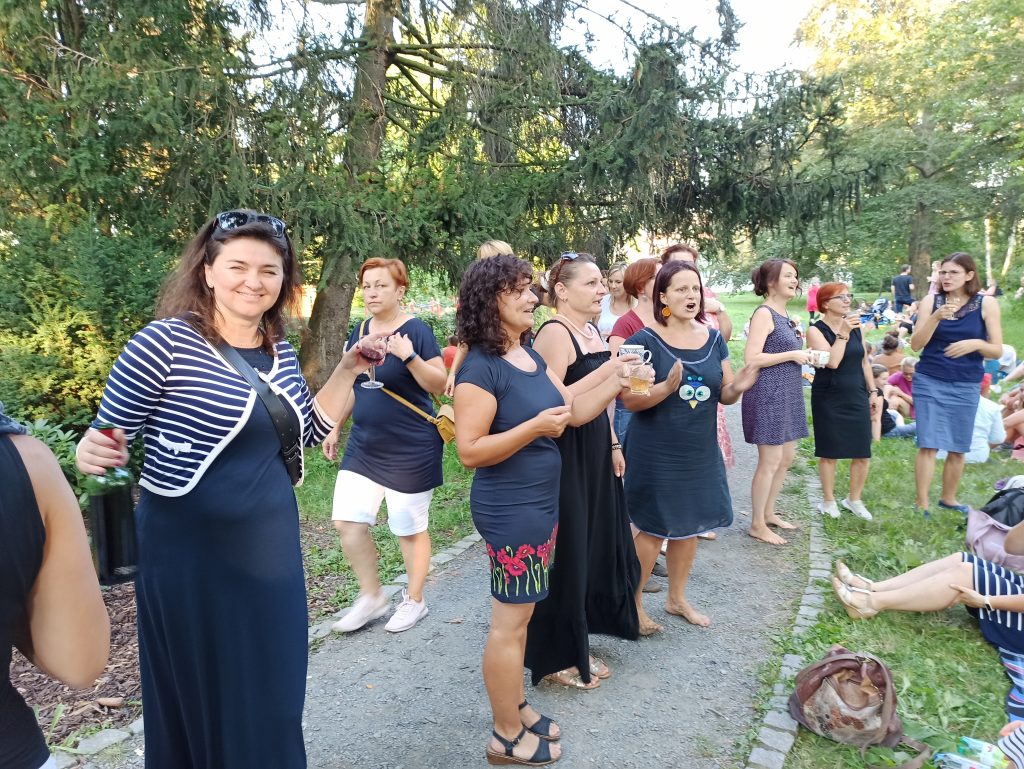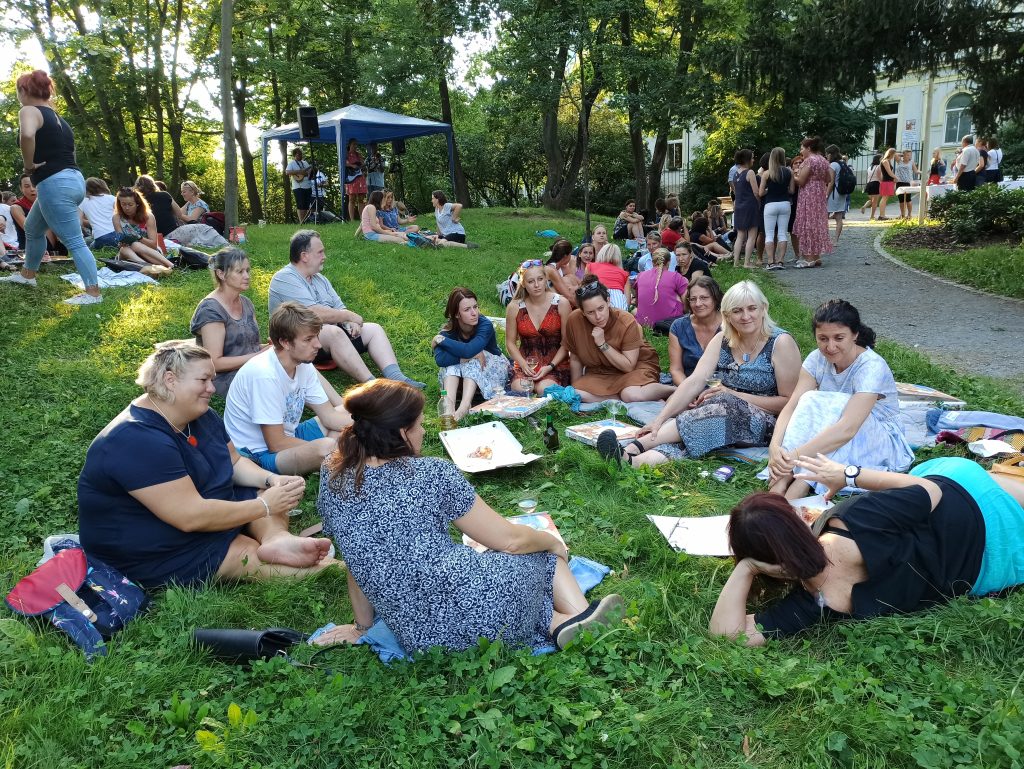 Závěrečný večer byl jedinečný nejen díky moravské kapele a vínu, ale k úžasné atmosféře přispěly všechny týmy společným piknikem v parku.