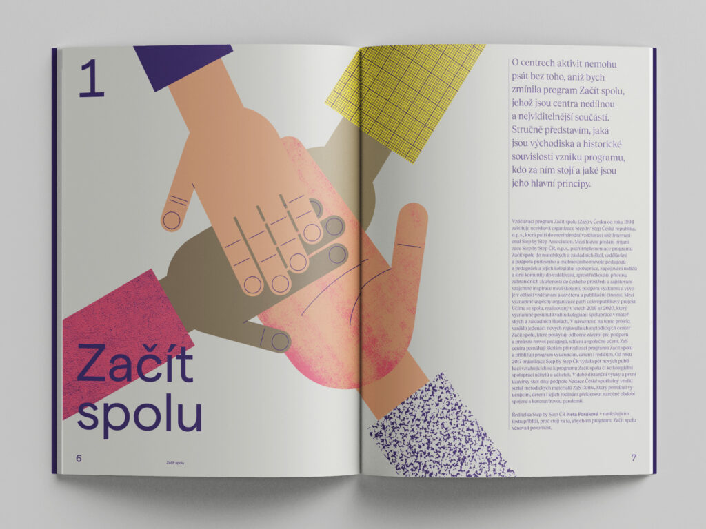„V publikaci autorka Anna Babanová klade otázky, zda skutečně poskytujeme v centrech aktivit dětem možnost volby, zda jsou naše zadání dětmi vnímaná jako smysluplná, zda doopravdy integrujeme vzdělávací obsahy nebo je spíše uměle šroubujeme na zvolené téma. Zároveň předkládá důkazy toho, že centra aktivit nabízejí prostor pro hluboké učení, jak ho definuje Michael Fullan. Hluboké učení podle něj stojí na šesti pilířích, kterými jsou rozvoj charakteru, občanství, spolupráce, komunikace, kreativita a kritické myšlení. Fullan hovoří o stejných kompetencích, které v programu Začít spolu rozvíjíme a pěstujeme spolu s dětmi, jejich rodiči a také kolegy učiteli. K reflexi programu Začít spolu přistupuje publikace i v kontextu současné pedagogiky a aktuálních výzev pro český vzdělávací systém, které přinášejí Strategie 2030+ nebo tzv. velké revize Rámcového vzdělávacího programu pro základní vzdělávání. A opět silně poukazuje na to, že Začít spolu nabízí životaschopný, praxí prověřený vzdělávací model pro rozvoj kompetencí v podmínkách rovných příležitostí pro každé dítě, model, který je možné v současném složitém světě následovat,” vysvětluje ředitelka organizace SbS ČR, Iveta Pasáková, v úvodu do příručky.