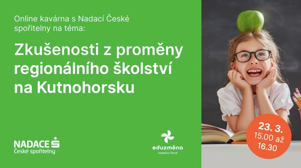 Dění v projektu Eduzměna Kutnohorsko se budeme věnovat na online setkání, které k tématu proměny regionálního vzdělávání pořádá Nadace České spořitelny.