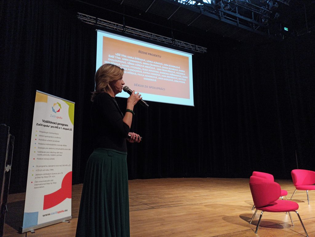 A proč právě v Trutnově? „ZŠ kpt. Jaroše v Trutnově je jedna ze škol, které s námi projektem celé čtyři roky procházely a kde se odehrálo mnoho projektových aktivit. Jsme proto rádi, že závěrečnou konferenci můžeme pořádat právě zde. Naše projektová manažerka Jana Schierlová v této škole působí a oceňuje zejména ochotu vedení a vyučujících se posouvat a vyvíjet nové formy spolupráce mezi učiteli,“ vysvětluje Mgr. Iveta Pasáková, ředitelka Step by Step ČR, o.p.s.