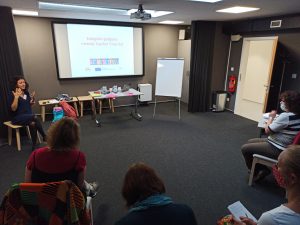Věra Krejčová ve své prezentaci vysvětlila souvislost projektu s programem Začít spolu, Mark Tange z Nizozemí nabídl “case study” projektu Bullseye a Mateja Režek hovořila o spolupráci vyučujících předškolních zařízení ve Slovinsku. Oba zahraniční řečníci nabídli účastníkům video prezentace s živými vstupy.