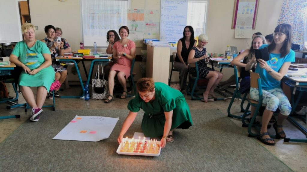 Letní škola nabídla kompletní nabídku kurzů Začít spolu MŠ a ZŠ pro začínající učitele, ale i pro ty, kteří se v programu chtěli dále rozvíjet. Letos poprvé se na letní škole udělovaly zlaté Certifikáty Učitel/ka programu Začít spolu, které získali/y absolventi/tky dlouhodobého výcviku.