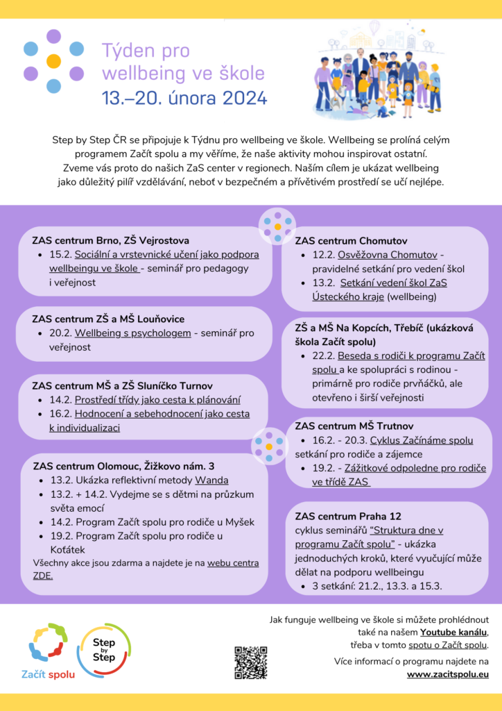 “Program Začít spolu se stal součástí této iniciativy, protože wellbeing se prolíná celým programem a je přítomný během každého dne ve škole. Respektující přístup k dítěti, formativní hodnocení a spolupráce s rodinou jsou základní předpoklady k tomu, aby se dítě ve škole cítilo dobře a mělo chuť poznávat svět,” vysvětluje Iveta Pasáková, ředitelka Step by Step ČR.