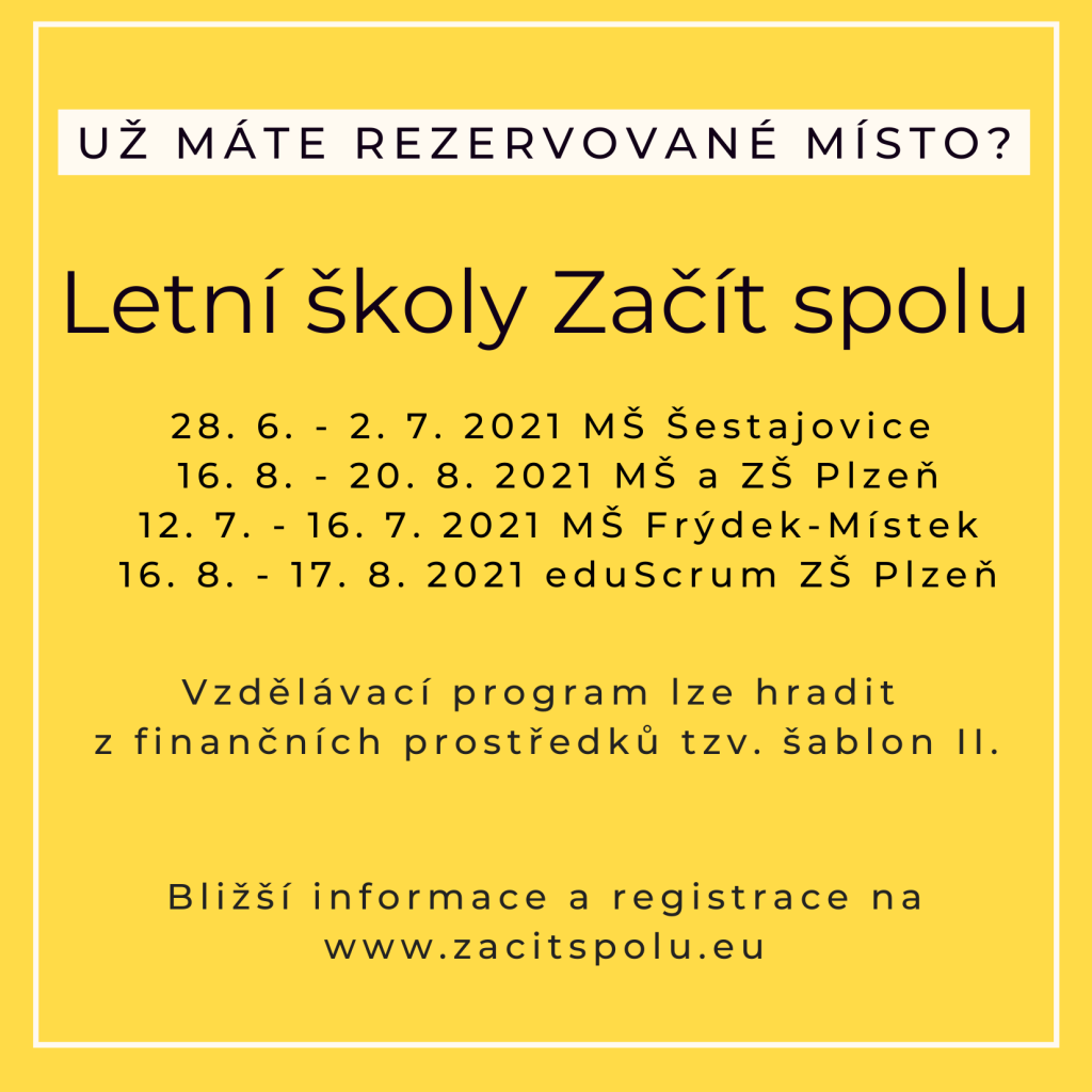 V letošním roce se letní školy Začít spolu konají na 3 místech: V Šestajovicích u Prahy, v Plzni a ve Frýdku-Místku. Registrace na kurz ve Frýdku-Místku byla právě otevřena ZDE.