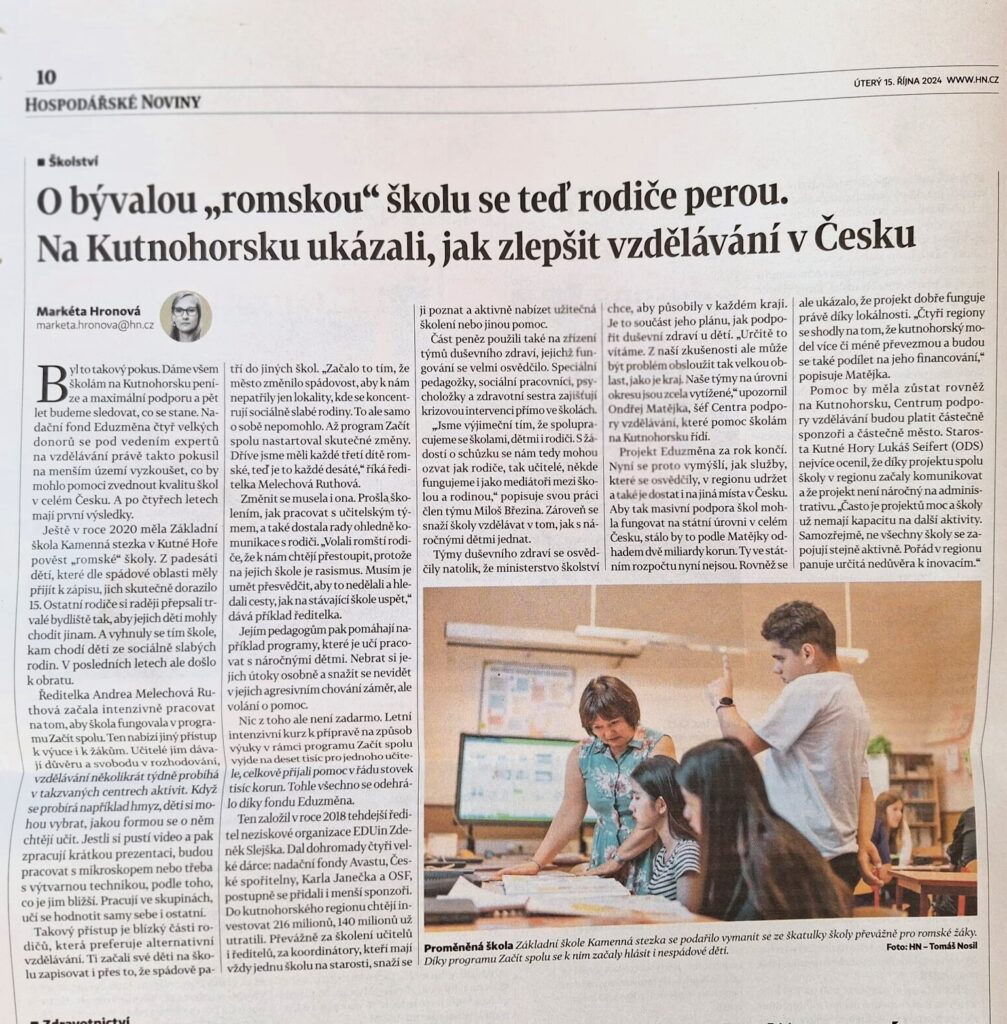 Celý článek autorky Markéty Hronové, který vyšel 15. října 2024 v Hospodářských novinách, si můžete přečíst ZDE.