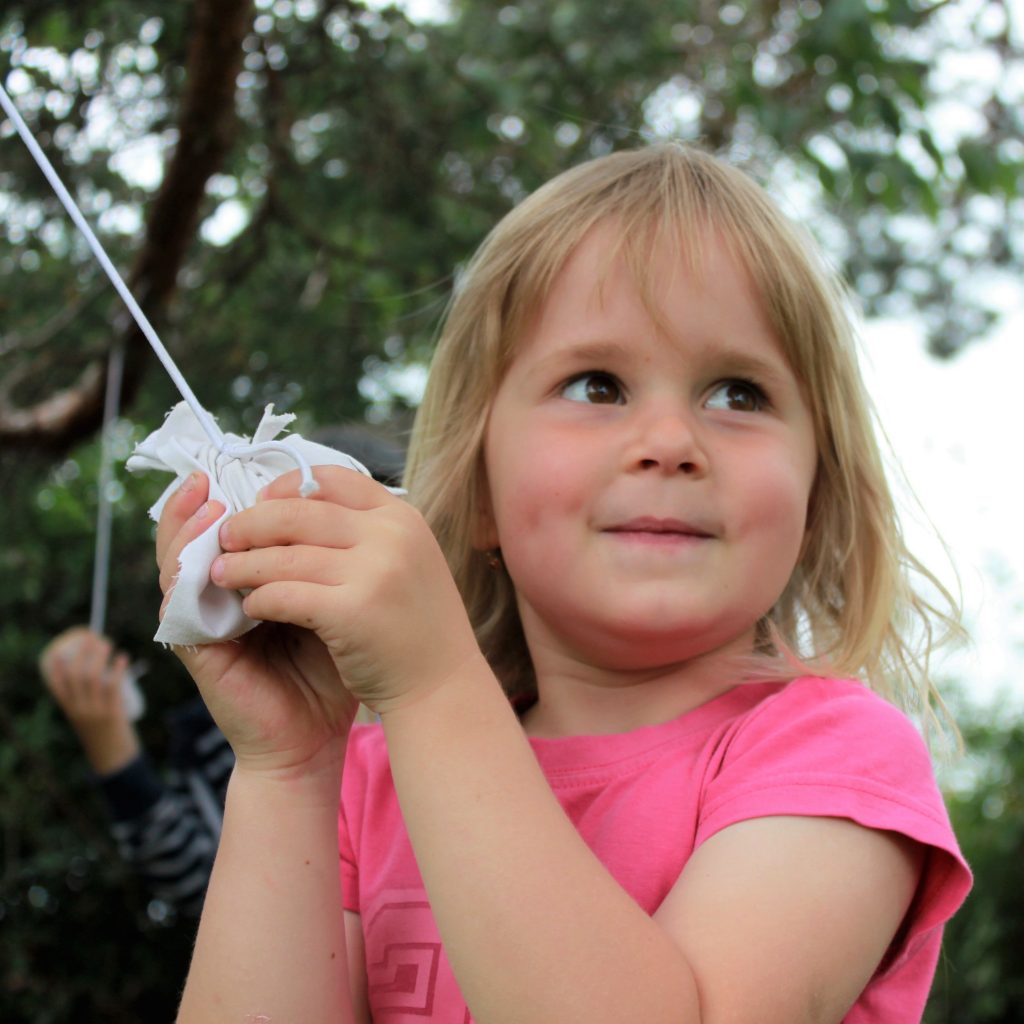 Na ostrově piráti ucítili krásnou vůni, nějaké neznámé bylinky či koření? Úkol zněl najít dva stejně vonící balíčky, zavěšené na gumičce na větvích stromu na zahradě.