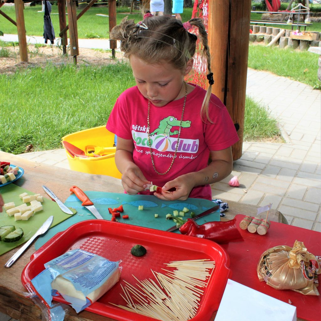 Piráti si na dlouhé plavbě zaslouží pořádné občerstvení v podobě zelenino-sýrového špízu. V altánu školní zahrady mohou děti připravit to pravé pirátské pohoštění a dozdobit jej sedmikráskami či brutnákem ze školní zahrádky.