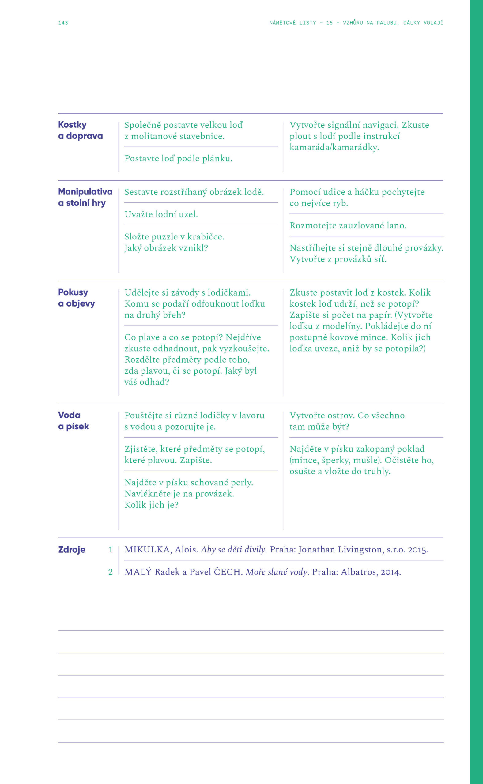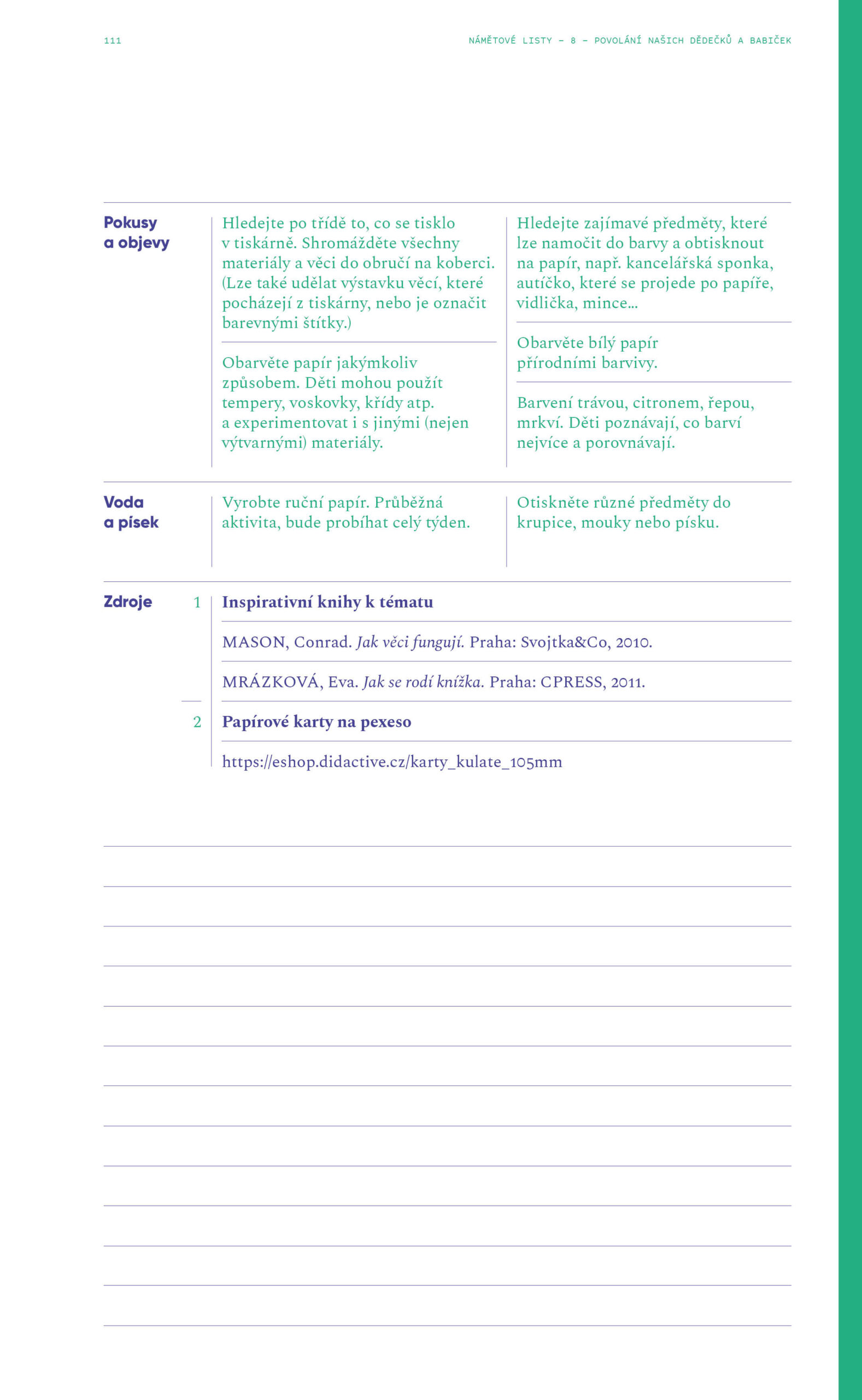Jednotlivé námětové listy vám zde nabízíme k využití.