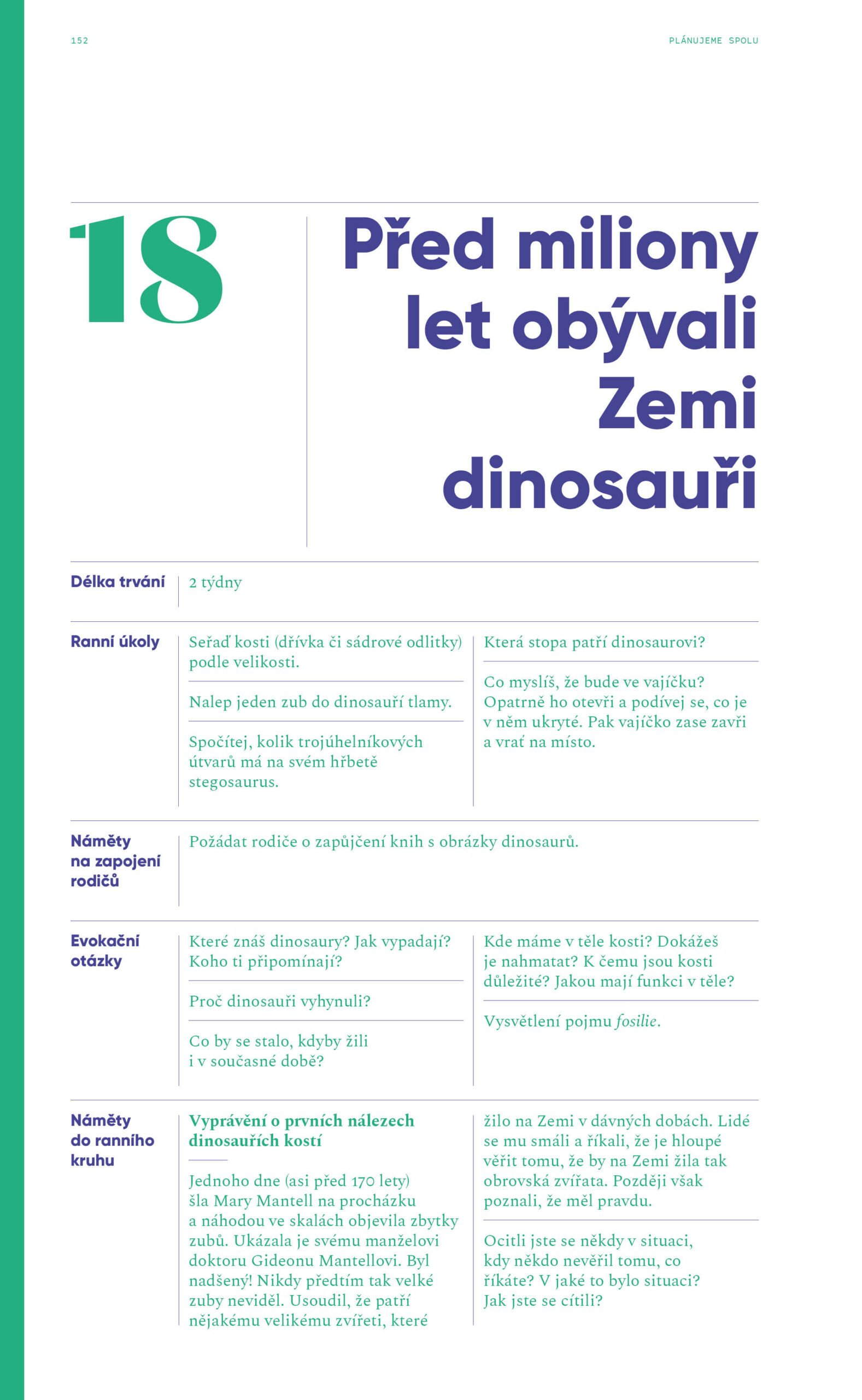 První část průvodce se věnuje stručnému představení základních principů a východisek důležitých pro plánování v Začít spolu. Nabízí přehled různých forem a způsobů plánování. Podrobněji představuje jeden tematický celek, na kterém ukazuje, jak může učitel/ka při plánování postupovat, co všechno bere v úvahu, jak v rámci jednoho tématu zajištuje širokou nabídku rozmanitých činností, ze kterých si mohou děti samy volit, jak v plánování zohledňuje individuální možnosti dětí atp.