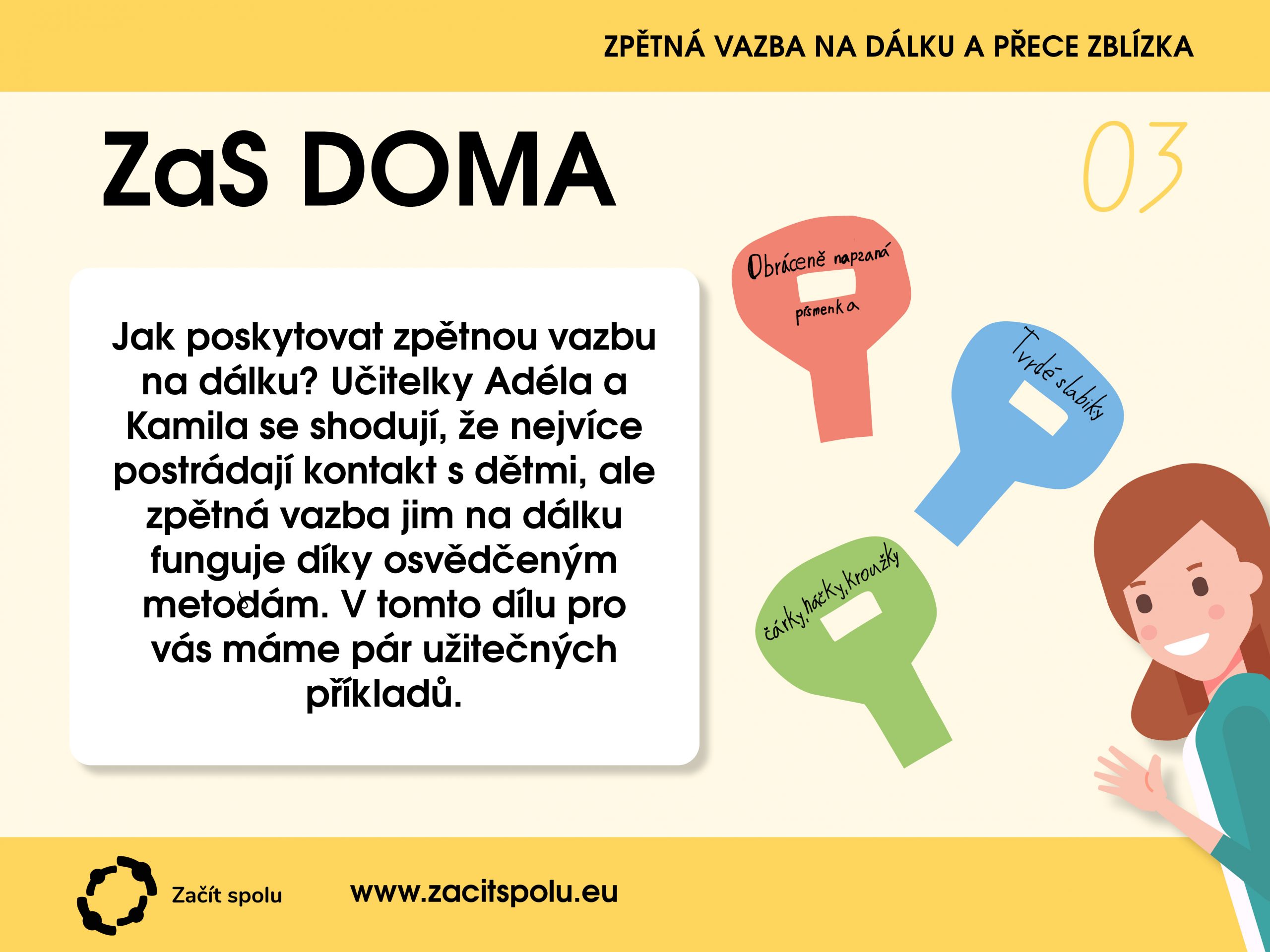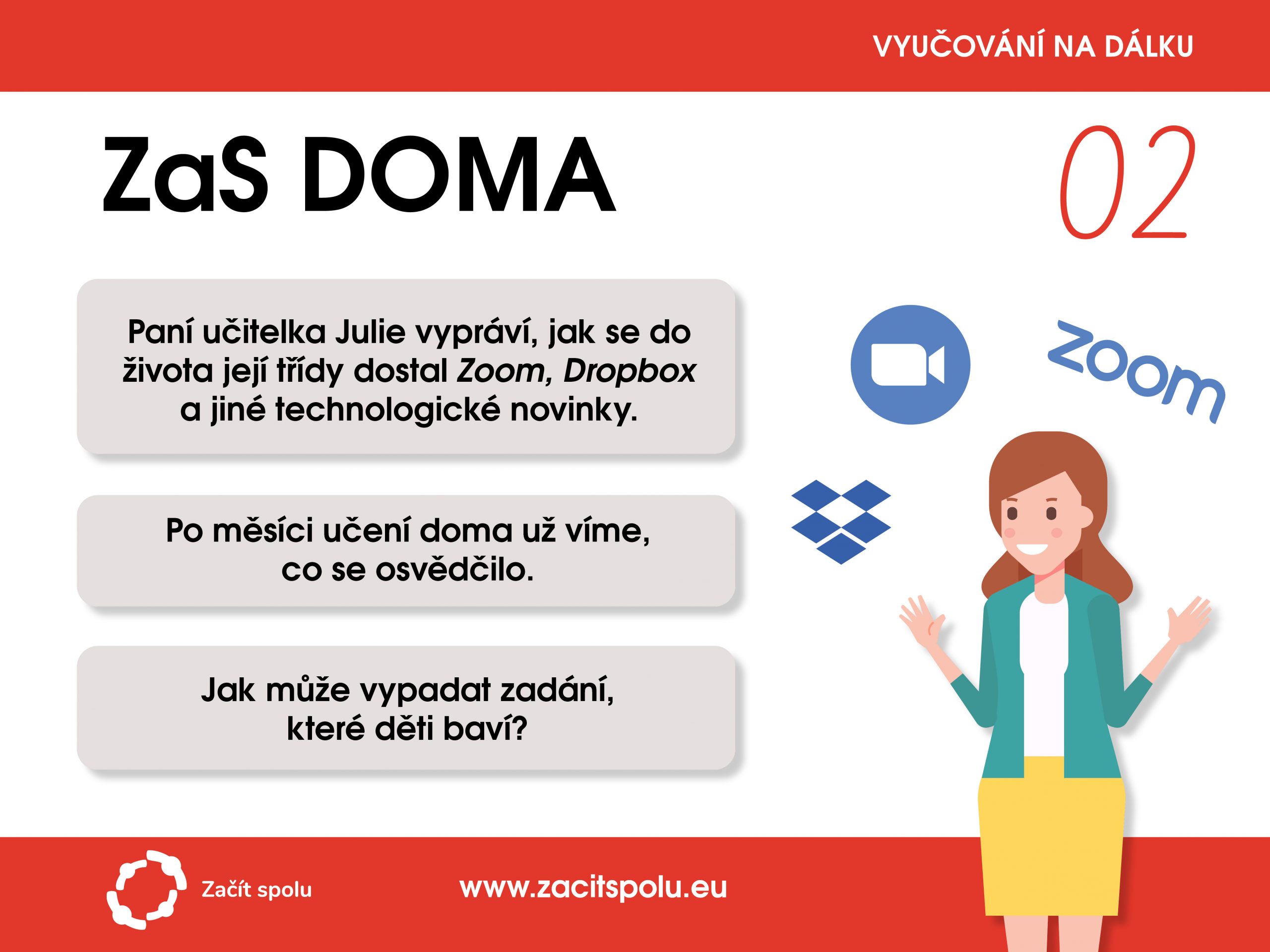 Děkujeme vám všem, kdo jste se na seriálu podíleli a sdíleli své zkušenosti napříč celou ČR. Vaší přízně a důvěry si velmi vážíme. ZaS DOMA získal pozornost také u odborné veřejnosti a probojoval se do finále soutěže EDUína. Více o finále soutěže a prezentaci ředitelky Ivety Pasákové se dozvíte ZDE.